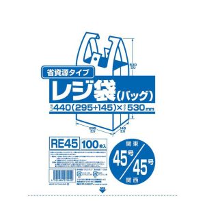 ジャパックス JAPACK’S ジャパックス RE45 業務用省資源タイプ レジ袋 100枚入 関東 45号 関西 45号 乳白