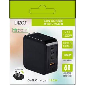 ラソス Lazos ラソス L-AC4-G100B AC充電器 窒化ガリウム採用 GaN第3世代 4ポート 100W