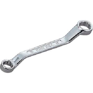 柄部の曲がり角度が45度になっており、周辺の障害物を避けて作業が可能。めがね部はリング状なので、ボルト、ナットから外れにくく、均等に荷重を受けるため、強力・確実に締め付けることができます。12角のためナットにはめやすく、比較的狭い場所でも作業が容易です。