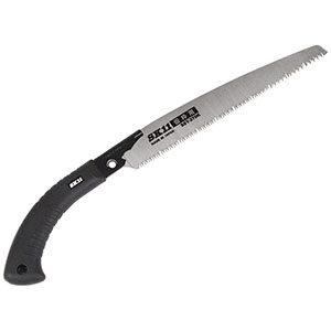 SK11 替刃式サヤ付鋸270 仮枠 SSY-270Kアサリなし研磨刃なので切断面がきれいでスムーズな切れ味です。コンパネ・角材・塩ビパイプの切断作業。回転脱着式で、替刃の交換が工具不要で簡単です。刃先衝撃焼入れなので切れ味が長持ちします。無電解ニッケルメッキなので、さびにくいです。特殊Uカット目立てなので、切粉をスムーズに排出し、切れ味が良いです。携帯に便利なベルトホルダー式で刃先を収納できるので、収納にも便利です。●刃渡り:270mm。●刃厚:1.0mm。●目数:11枚目。材質●刃:SK-5。●グリップ:エラストマー樹脂。